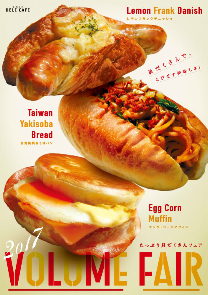 デリカフェ「VOLUME FAIR」開催中 2017.06.01 DELI CAFE お知らせ お知らせ ボリュームたっぷりの惣菜パンをご用意しました。(~6/30) レモンフランクデニッシュ 250円 台湾風焼きそばパン 240円 エッグ・コーンマフィン 250円 ※店舗により取扱いがない場合があります
