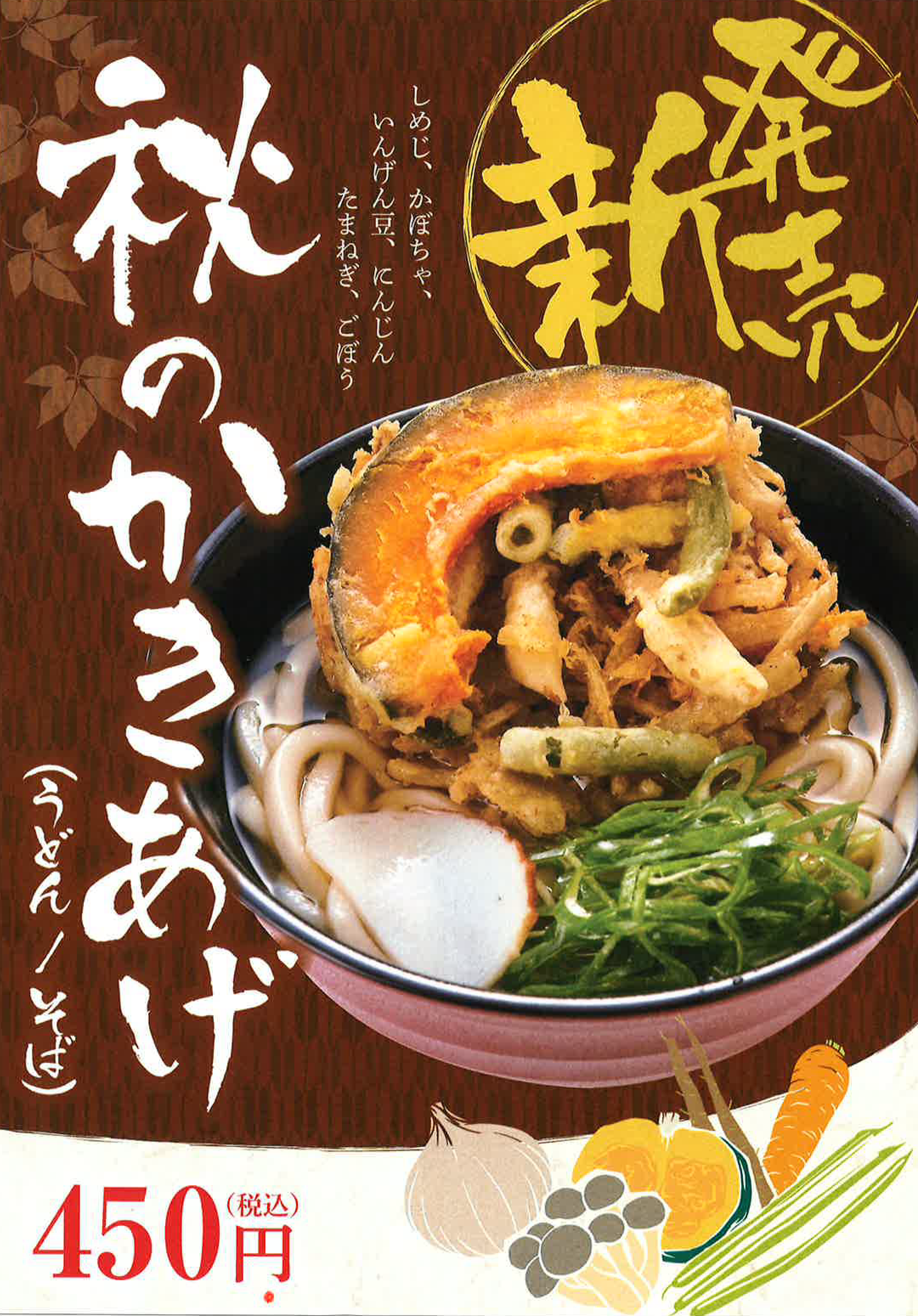 麺家 秋の新商品(秋のかきあげ うどん/そば)のご案内 2021.10.01 お知らせ 麺家 お知らせ 麺家で秋の新商品(秋のかきあげ うどん/そば)を期間限定で販売します。(~2021年12月末予定) 秋のかきあげ うどん/そば 450~500円 ※税込価格 ※取扱店舗:麺家京橋東西線、京橋外回り、三ノ宮、さがの、京都上がも、京都下がも、大阪みどう、明石、兵庫、鳳、山科、西九条、尼崎、新大阪上り、草津、天王寺、鶴橋、茨木、みちくさ、高槻 ※店舗により価格が異なります。 麺家(店舗情報)