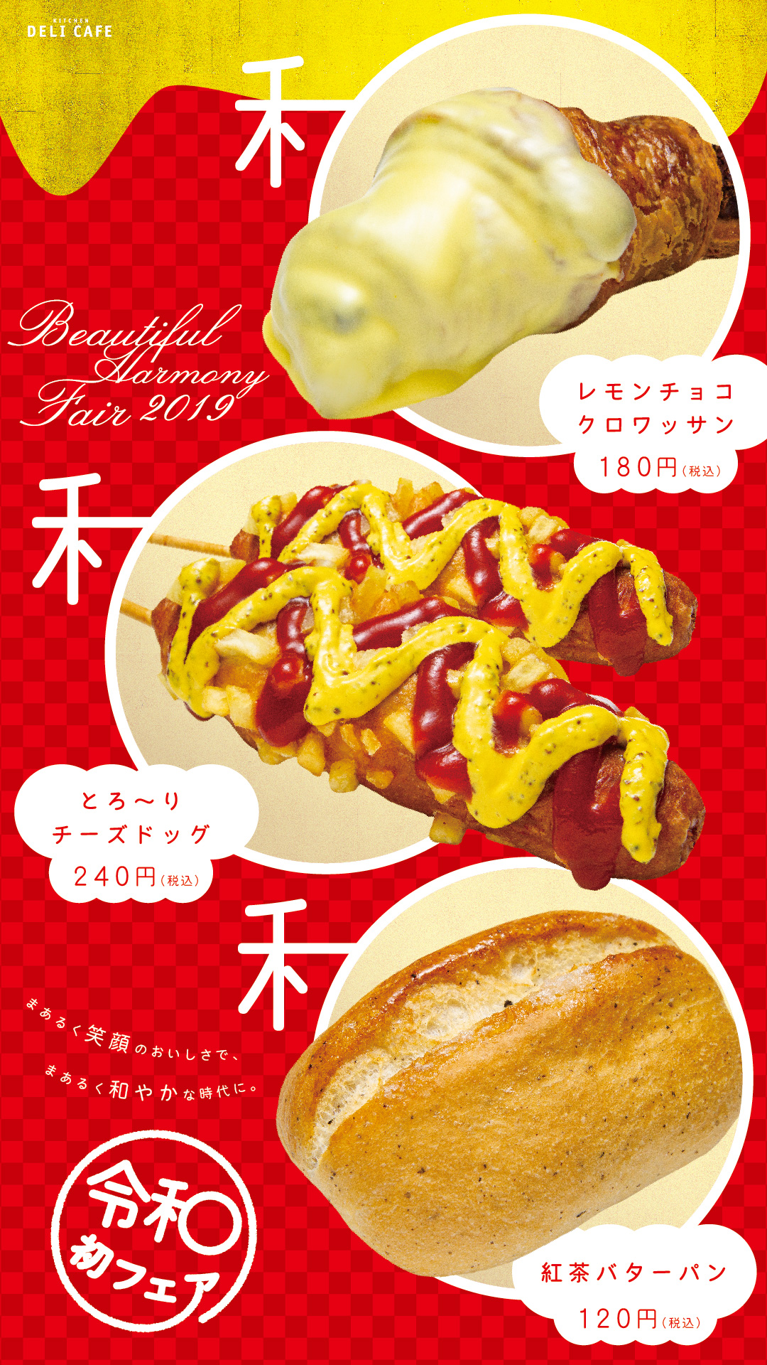 DELI CAFE 「令和フェア」を開催します 2019.05.23 DELI CAFE お知らせ お知らせ レモンチョコクロワッサン 180円 とろ~りチーズドック 240円 紅茶バターパン 120円 ※税込価格 ※取扱店舗:デリカフェ草津・三ノ宮・大阪mido・元町・宝塚・石山 デリカフェ(店舗情報)
