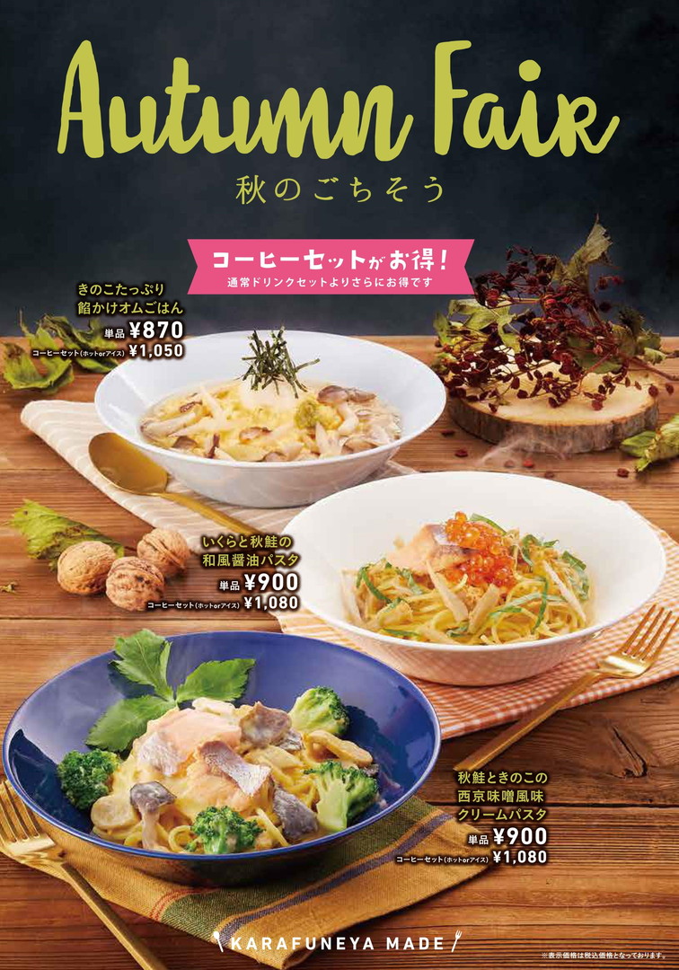 からふね屋珈琲で「秋のパスタフェア」を開催します。(~11/末予定)