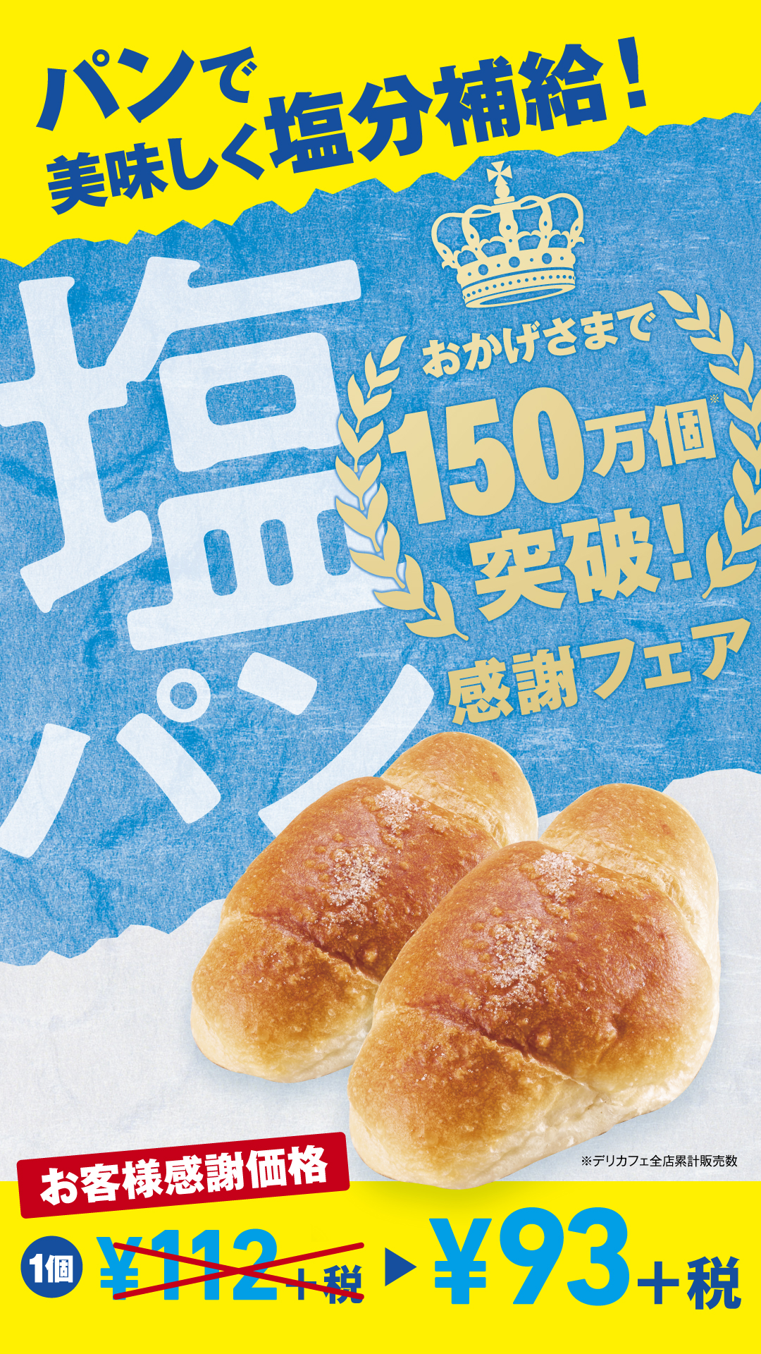 DELI CAFE 「塩パン」お客様感謝価格のご案内 2020.07.16 DELI CAFE お知らせ お知らせ DELI CAFEで「塩パン」をお客様特別価格で販売します。(~9/末予定) 塩パン 112円→93円 ※税抜価格 ※取扱店舗:デリカフェ草津、三ノ宮、大阪mido、元町、石山、宝塚、灘、mini デリカフェ(店舗情報)