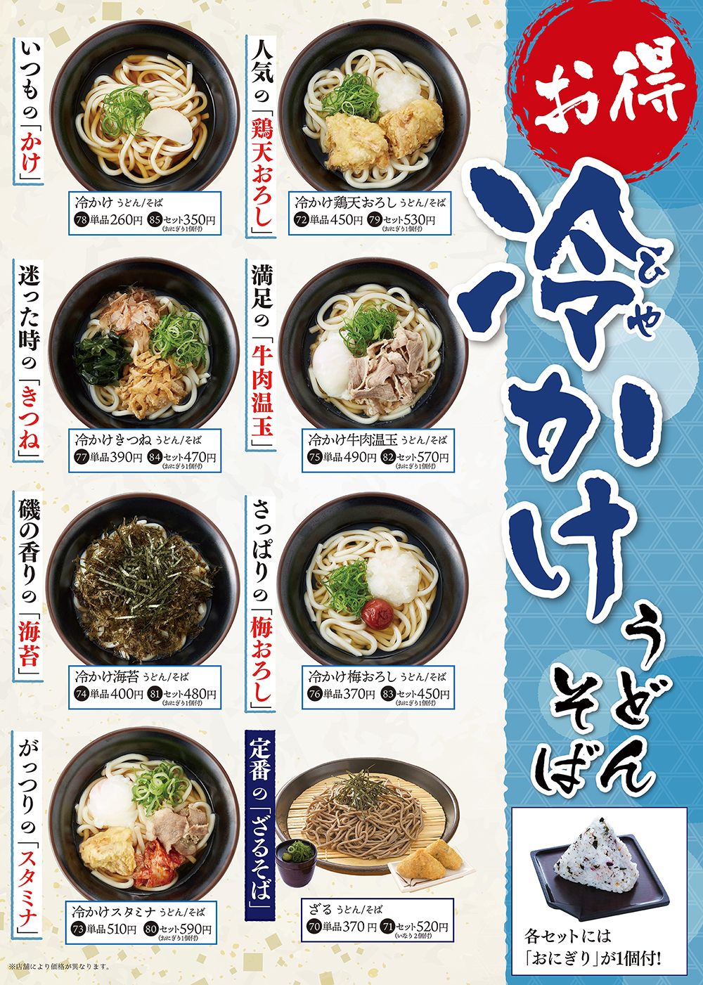 麺家で「冷かけうどん/そば」を販売します。(~9/末予定)
