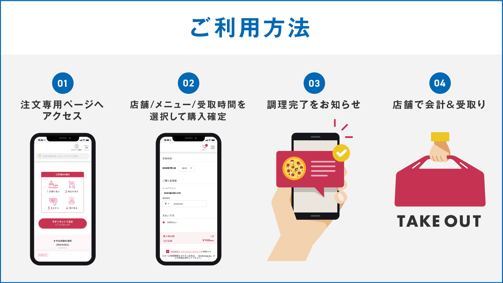 事前に注文することで店舗で待たずに商品を受け取りができる、