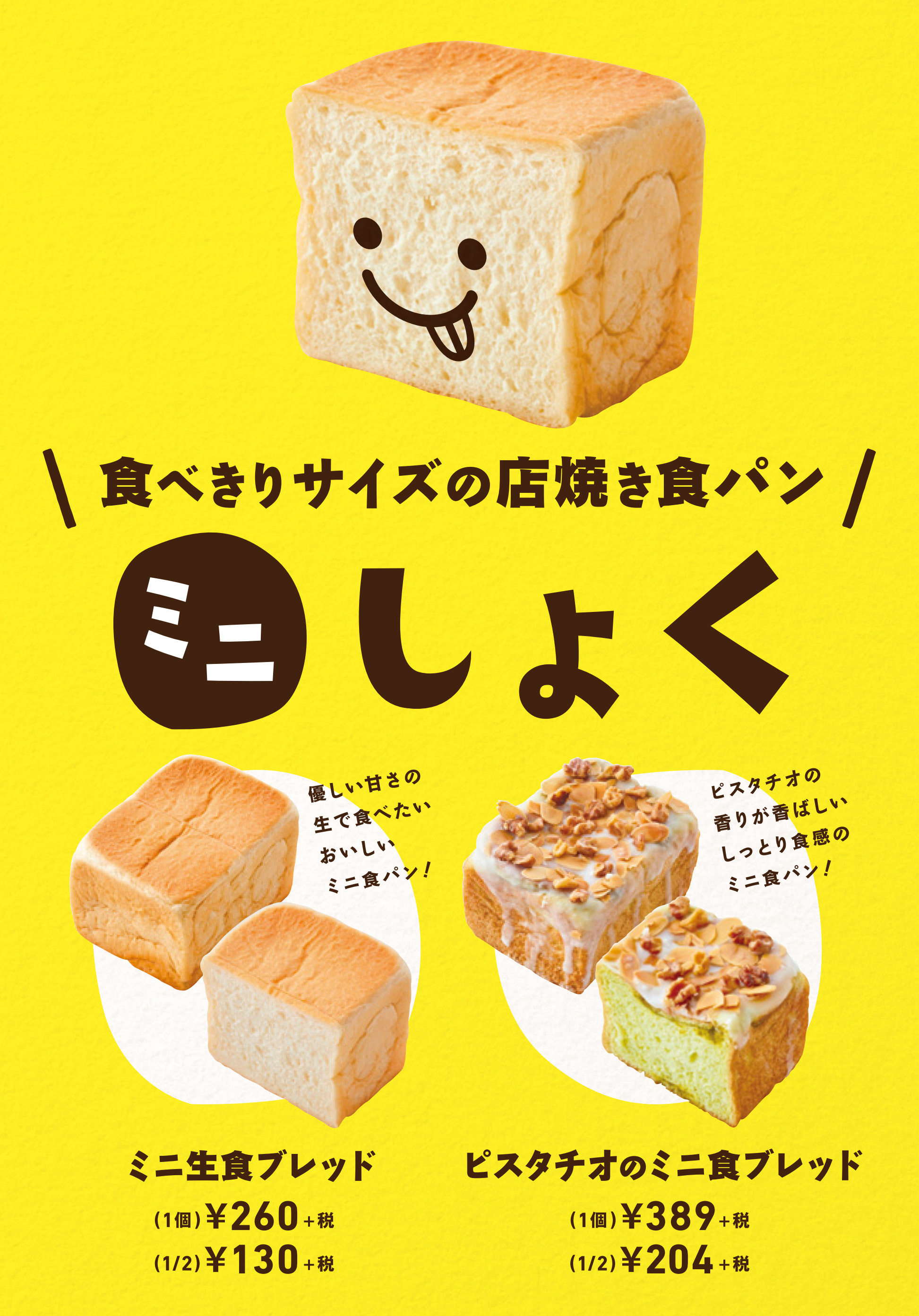 ・ミニ食ブレッド(1個)260円、(1/2)130円