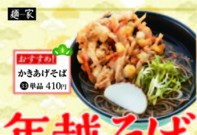 麺家で「年越そば」「年明けうどん」を販売します。 【年越そば】 ・かきあげそば 410~460円 ・スタミナそば 560~580円 ・にしんそば 570~620円 ...