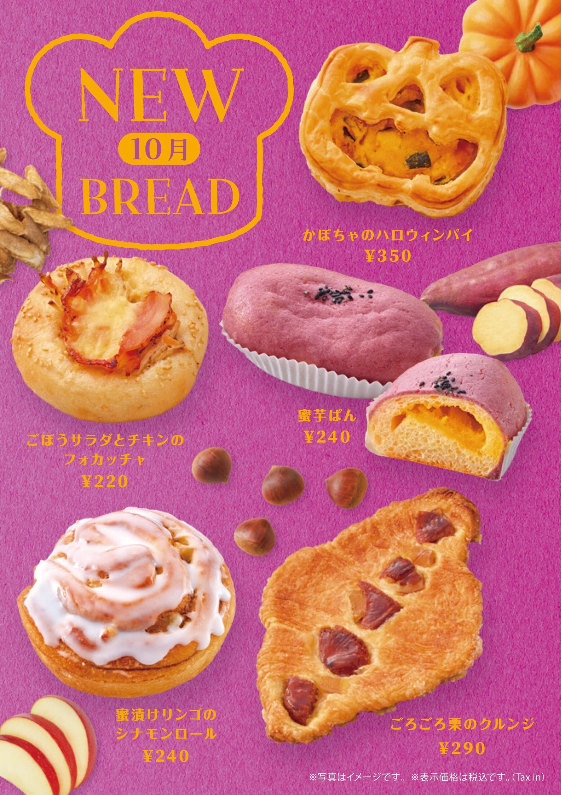 ※灘店、京橋店、茨木店は「蜜芋ぱん、蜜漬けリンゴのシナモンロール」の販売はございません。