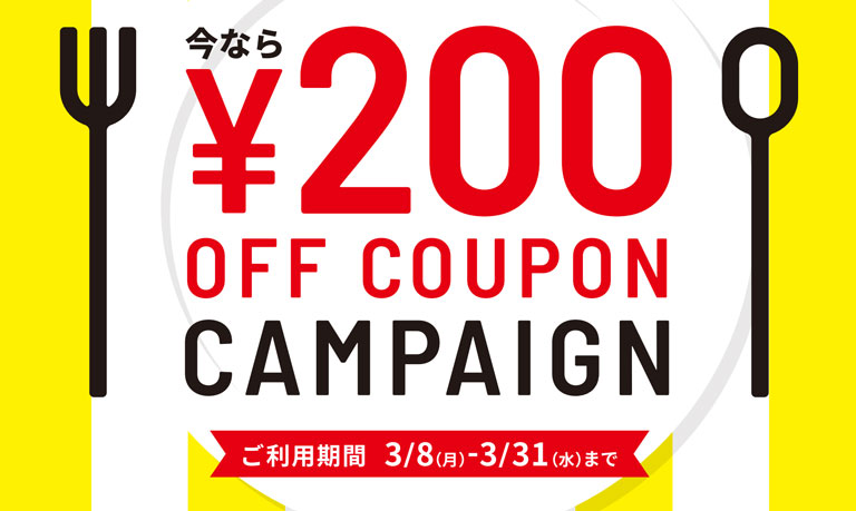 スマホからのテイクアウト注文がお得に! モバイルオーダー限定キャンペーンを3月8日より開始 ~さらに便利にご利用いただける機能の追加を予定しています!~ 2021.03.05 お知らせ その他 プレスリリース モバイルオーダー限定でテイクアウトをお得にご利用いただけるキャンペーンを2021年3月8日(月)より開始いたします。 【キャンペーン概要】 ■期間 2021年3月8日(月)~3月31日(水) ■内容 モバイルオーダーで注文した商品の支払い時にキャンペーン付きチラシをお渡しいただくと、ご購入金額から200円割引させていただきます。 詳しい内容はこちら PDFへ