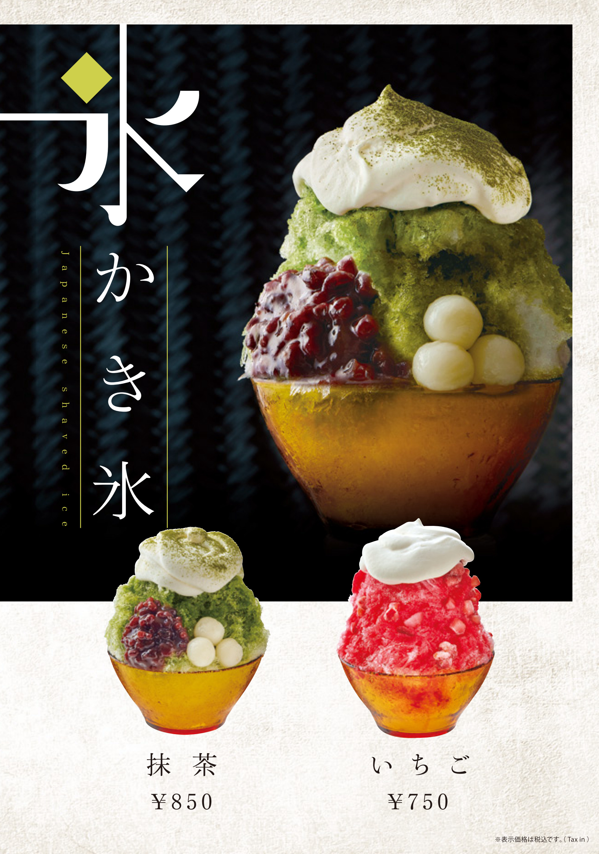 かき氷(いちご、抹茶) 600~850円