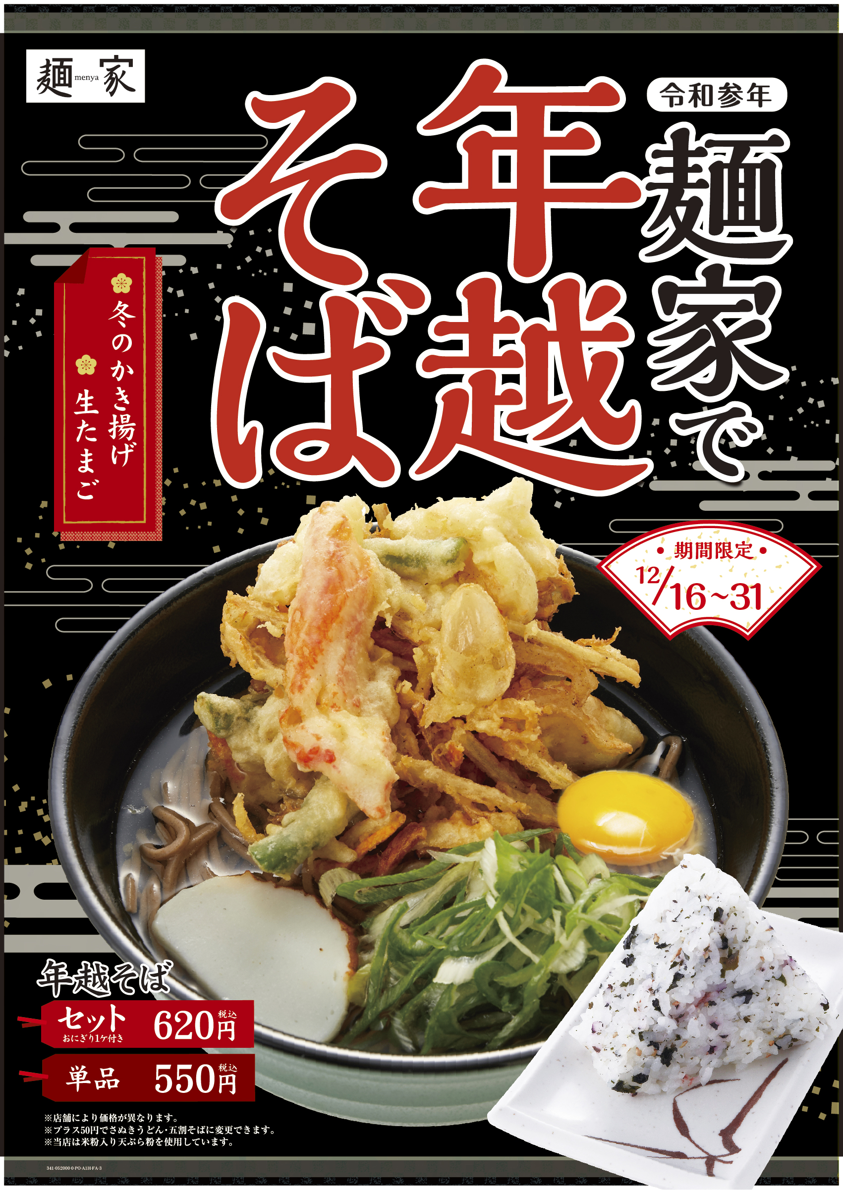 麺家で「年越そば」「年明けうどん」を期間限定で販売します。