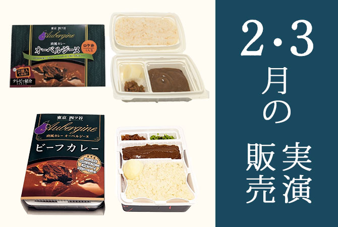 旅弁当駅弁にぎわい 2023年2月23日~3月8日 2023.03.02 お知らせ 旅弁当 プレスリリース 「旅弁当駅弁にぎわい」実演販売のお知らせ 2023年2月23日(木)~3月8日(木) 営業時間 10:00~19:00 実演販売会社:一冨士ケータリング株式会社 オーベルジーヌビーフカレー 1,296円 温まるオーベルジーヌビーフカレー 1,580円 ※税込価格