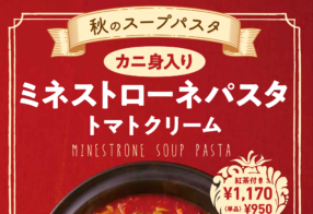 DELI CAFEの秋の新商品(スープパスタ)を期間限定で販売します。(~2021年11月末予定) カニ身入りミネストローネパスタ トマトクリーム 850円 ソー...