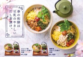 からふね屋珈琲で春の新商品(フード、パフェ)を期間限定で販売します。(~2025年6月中旬予定) ビビンバ風豆乳だし茶漬け和膳 1,130円 鶏飯風豆乳だ...