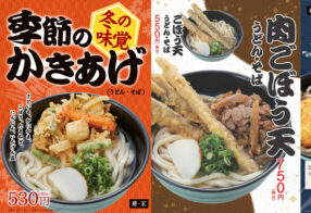 麺家で冬の新商品を期間限定で販売します。(~2025年3月中旬予定) ごぼう天 うどん/そば 550~600円 肉ごぼう天 うどん/そば 750~800円