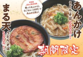 麺家で冬の新商品を期間限定で販売します。(~2025年3月中旬予定) まる天 うどん/そば 580~630円 あんかけ うどん/そば 680円 ※税込価格 ※取扱店舗...