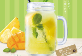 デリカフェで「夏のおすすめ ドリンクフェア」を期間限定で開催します。(~9/末予定) 緑茶×パインとマンゴーのソーダ 500円 ※税込価格 ※取扱店舗:...
