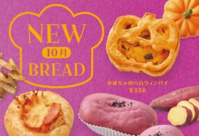 DELI CAFEでブレッドフェア(10月)の新商品を販売します。(~2025年10月下旬予定) かぼちゃのハロウィンパイ 350円 蜜芋ぱん 240円 ごぼうサラダと...