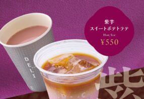 DELI CAFEで秋の新商品(ドリンク)を期間限定で販売します。(~2025年12月中旬予定) 紫芋スイートポテトラテ(ホット・アイス) 550円 紫芋スイート...